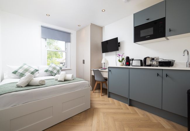 Questo studio accogliente è ideale per viaggi di lavoro e vacanze.